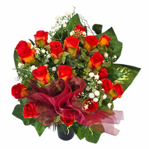 Bukiet flakon stroik na cmentarz sztuczne kwiaty róże kompozycja kwiatowa