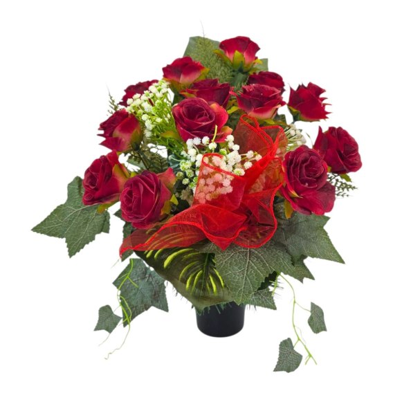 💚Stroik cechuje się unikalną kompozycją sztucznych kwiatów. Starannie dobrane kwiaty są niezwykle realistyczne, dodając wiązance autentyczności i podkreślając jej uroczysty charakter.
