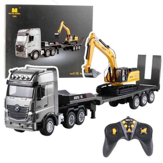 Ciężarówka Z Naczepą Koparka Zdalnie Sterowana RC Światła Dźwięk Huina 1:18