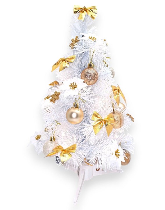 GOTOWA MAŁA CHOINKA BIAŁO ZŁOTA UBRANA 40cm + ŚWIATEŁKA