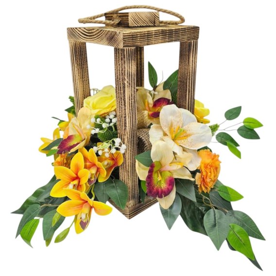 💚Dodaj wyjątkowy akcent do miejsca pamięci dzięki tej pięknej kompozycji w drewnianym lampionie. Stroik zachwyca żywymi kolorami i starannym wykonaniem - symbolizując pamięć oraz szacunek.