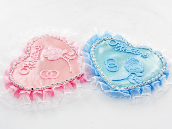 Ozdoba ślubna w kolorze błękitnym z białymi brzegami. W tym szczególnym dniu wiele zależy od detali. warto zadbać by nie zabrakło tak pięknych ozdobnych elementów. jak powyższe serduszko. symbolizujące miłość. wierność i przede wszystkim jedność. W środku serduszka umieszono napis Wedding. Obok róża i obrączki. Wszystkie elementy nieodłącznie wiążą się z małżeństwem i tym najważniejszym w życiu dniem.