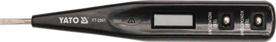 Próbnik napięcia YT-2861 z wyświetlaczem LCD umożliwia stwierdzenie obecności napięcia elektrycznego AC oraz wykrywanie napięcia AC metodą indukcyjną Obecność napięcia sygnalizowana jest wskazaniem na wyświetlaczu LCD.