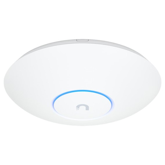U7 Pro to punkt dostępowy Wi-Fi 7 do montażu sufitowego, obsługujący częstotliwość 6 GHz, posiadający łącze nadrzędne 2,5 GbE i prędkość transmisji bezprzewodowej 9,3 Gb/s.