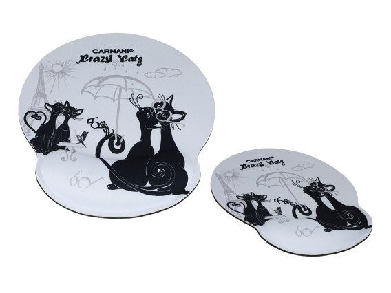 Podkładka pod mysz komputerową z poduszką na nadgarstek - Koci świat, Koty w Paryżu (białe (CARMANI)