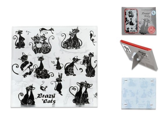 Podkładka szklana - Koci świat, białe (CARMANI)