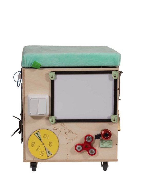 - elementy interaktywne umieszczone na pufie pobudzają ciekawość dziecka i