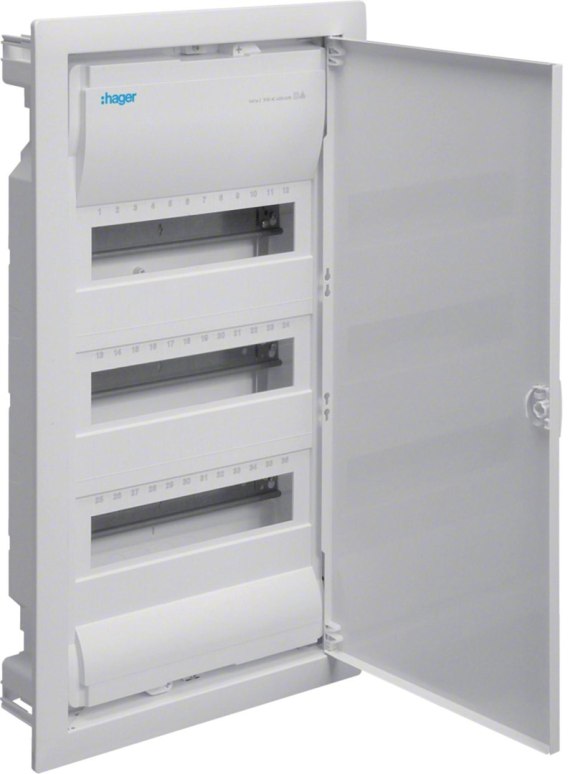 Rozdzielnica podtynkowa z drzwiami metal., 4 rzędy, 48 mod, IP30, QC, HAGER Volta VU48AT