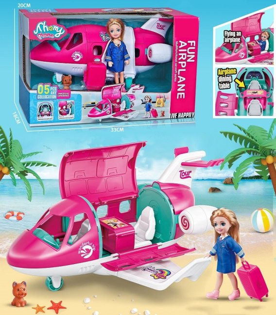 Samolot dla lalek rozkładany stewardessa akcesoria