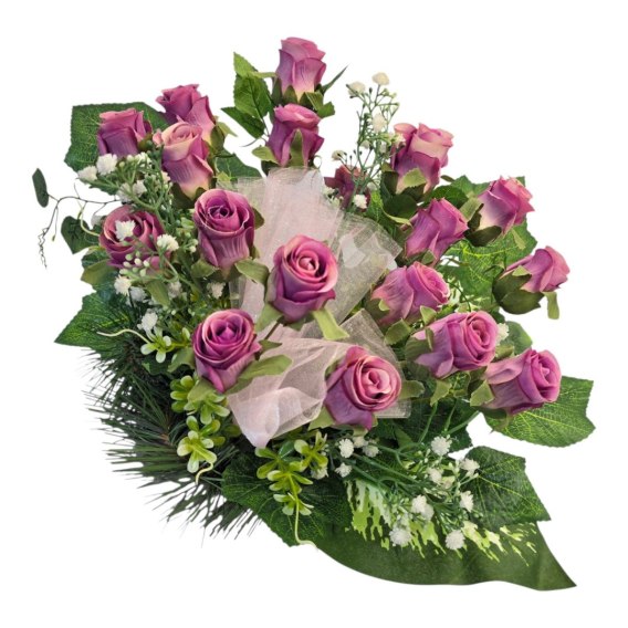 Stroik na cmentarz grób kompozycja kwiatowa na grób miska róże