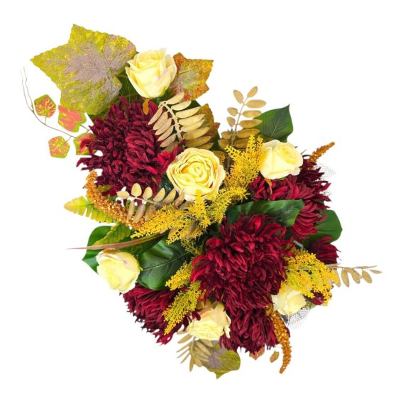 💚Stroik cechuje się unikalną kompozycją sztucznych kwiatów oraz innych dodatków. Starannie dobrane kwiaty są niezwykle realistyczne i naturalne, dodając wiązance autentyczności i podkreślając jej uroczysty charakter.