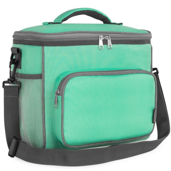 Torba termiczna - "lodówka" termoizolacyjna marki Kamaju z dużą główną komorą, dodatkową komorą przednią oraz siateczkami po bokach. Produkt przez długi czas utrzymuje swoją niską lub wysoką temperaturę. Wygodny i uniwersalny uchwyt na ramie ułatwi przenoszenie torby.Torba idealnie znajdzie zastosowanie jako torba na lunch, zakupy, plażę czy spacer z dzieckiem a także do przenoszenia ciepłych posiłków w chłodne dni.Opis produktutorba termiczna na lunch, prowiant piknikowy czy na podróżdoskonała podczas pikników, wyjazdów, ale również na codzienne zakupy w sklepieutrzymuje niskie lub wysokie temperaturywarstwa zewnętrzna: poliesterwarstwa wewnętrzna: materiał termoizolacyjnyskładana - lekka, łatwa w przechowywaniu, zajmuje mało miejscazewnętrzna przednia komora także jest termoizolacyjnadwie siatkowe kieszonki po bokachkomora główna zamykana za zamek błyskawiczny z dwoma suwakamiregulowany pasek na ramię z możliwością szybkiego odłączenia wygodny miękki uchwyt główny w pokrywieidealna torba na lunch, prowiant piknikowy, spacer z dzieckiem czy na podróżlamówki wzmacniające na obrzeżach torby, na dnie i pokrywieestetyczny, nowoczesny wyglądwymiary maksymalne z komorą przednią:szerokość: 28cmgłębokość: 22cmwysokość: 25cmwymiary przedniej komory:szerokość: 23cmwysokość: 15,5cmgłębokość 3cmmateriał wysokiej jakościpojemniość: 16 lkolor: miętowy