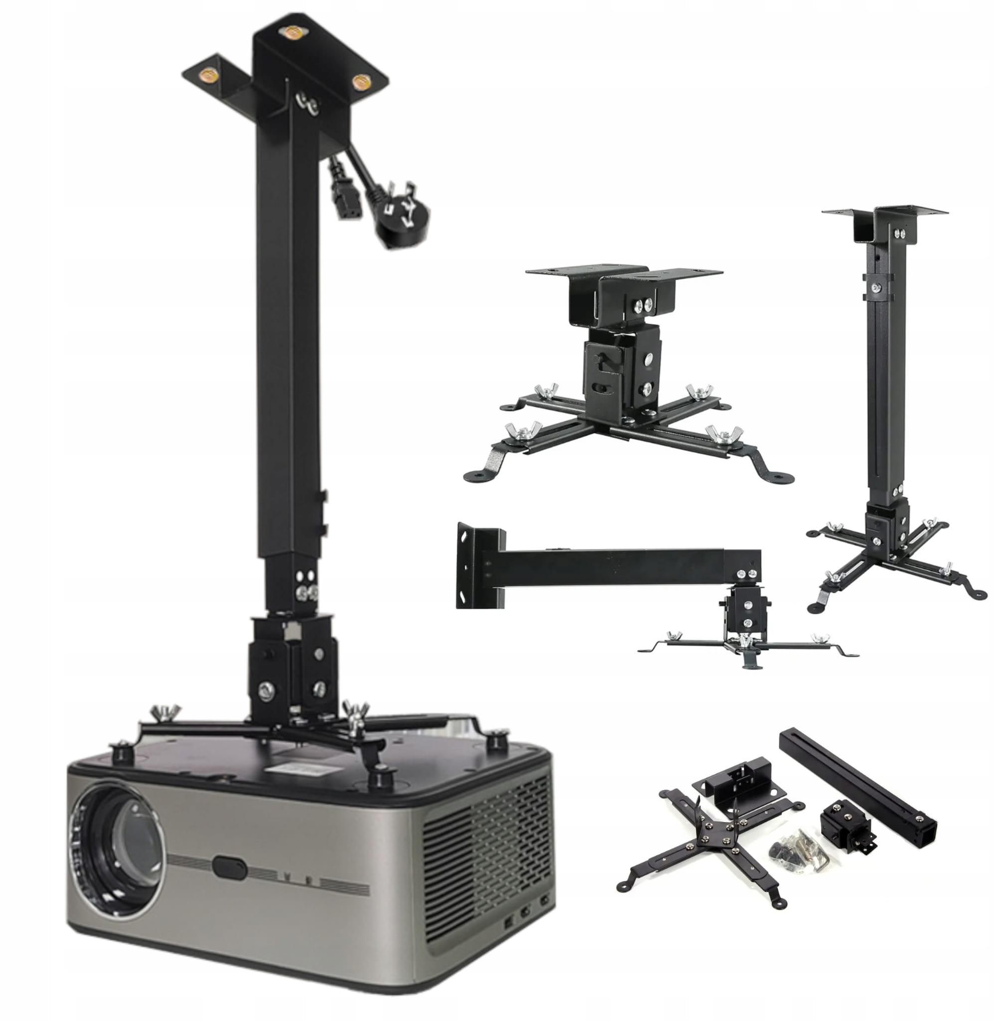 W komplecie akcesoria montażowe: wszystkie narzędzia do montażu, wiele rodzajów śrub pasujących do wszystkich projektorów, kołki rozporowe. Jedyne co musisz zrobić we własnym zakresie to wywiercić otwory w ścianie lub suficie pod uchwyt.