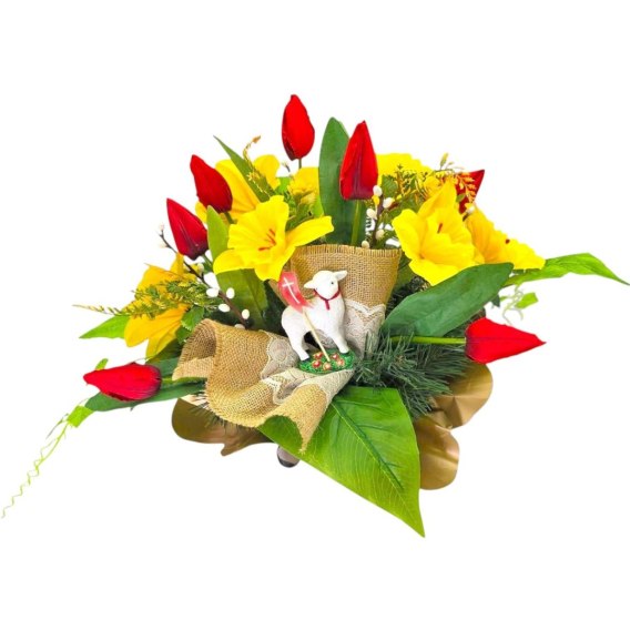 WIELKANOCNY STROIK NA POMNIK KWIATY NA GRÓB TULIPANY ŻONKILE BARANEK