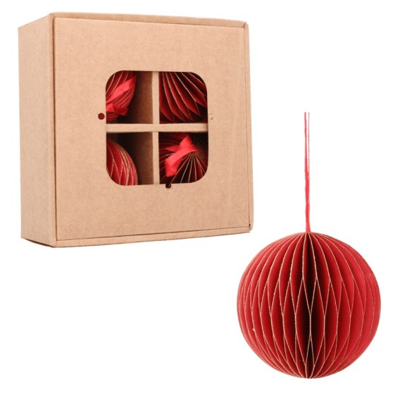Zestaw 4 bombek papierowych składanych 7cm - klasyczna czerwień