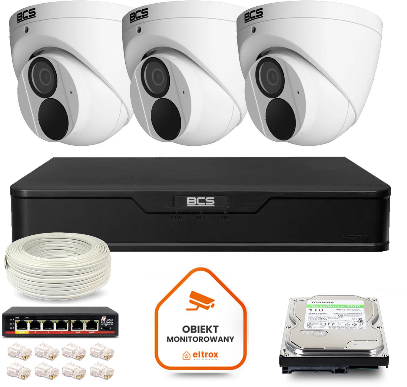 Zestaw monitoringu IP BCS Point 3x Kamera BCS-P-EIP28FWR3-Ai2 Rejestrator z dyskiem