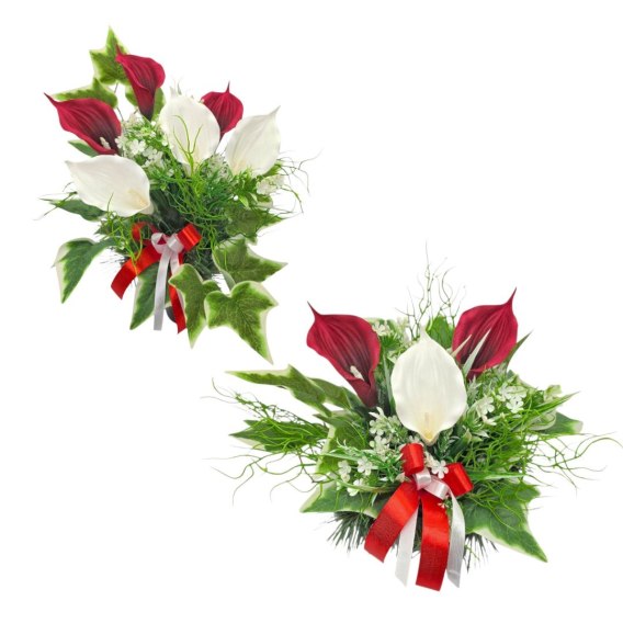 Ten komplet został przygotowany z myślą o spójnej i eleganckiej dekoracji nagrobka. Wianek i bukiet tworzą harmonijną całość, która w piękny sposób podkreśli pamięć o bliskich, zapewniając uroczysty i zadbany wygląd pomnika.