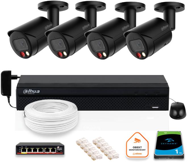 Zestaw monitoringu IP DAHUA 4x kamera IPC-HFW2849S-S-IL-0280B-BLACK 8MPX